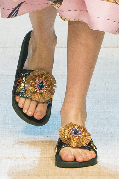 Планируя сезонный шоппинг каждый из нас стремится соответствовать модным тенденциям и правилам. Статья подчеркивает и выделяет именно неповторимые и интересные модели обуви, рассматривая которые можно вдохновиться на покупку, использовать в своём образе некоторые детали, например, перья и стразы, отследить форму каблука или фасон. С точки зрения искусства все отлично, но то, что блестит на подиумах часто совершенно не подходит для реальной жизни. Многие женщины живут в бешеном ритме, и главное, это удобство и комфорт. Спасибо дизайнерам за мюли и классические босоножки без каблука, а уличному street-style за возможность сочетать кроссовки практически с любым комплектом одежды. Мода циклична, и сейчас мы наблюдаем возвращение в 90е. На подиумах доминирует оригинальная отделка, неоновые расцветки, ботфорты, грубые ботинки и платформа. Можно следовать моде, но не терять своей индивидуальности.