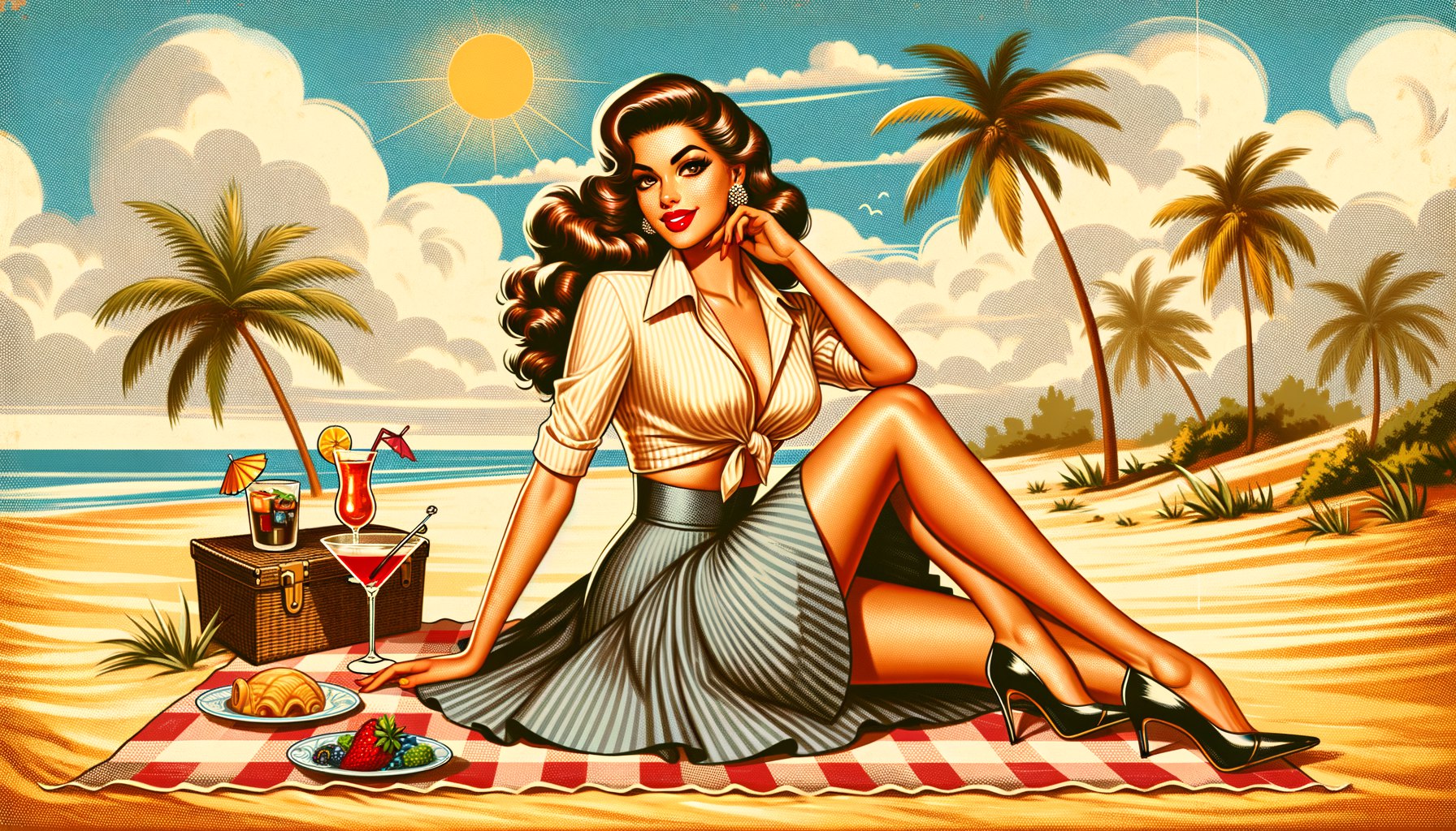 Пин ап искусство излучало радостное и позитивное настроение. Модели на иллюстрациях всегда улыбались и демонстрировали оптимистичное отношение к жизни. Такие образы передавали ощущение легкости и беззаботности, что было особенно привлекательно для зрителей в трудные времена войны и послевоенного восстановления.