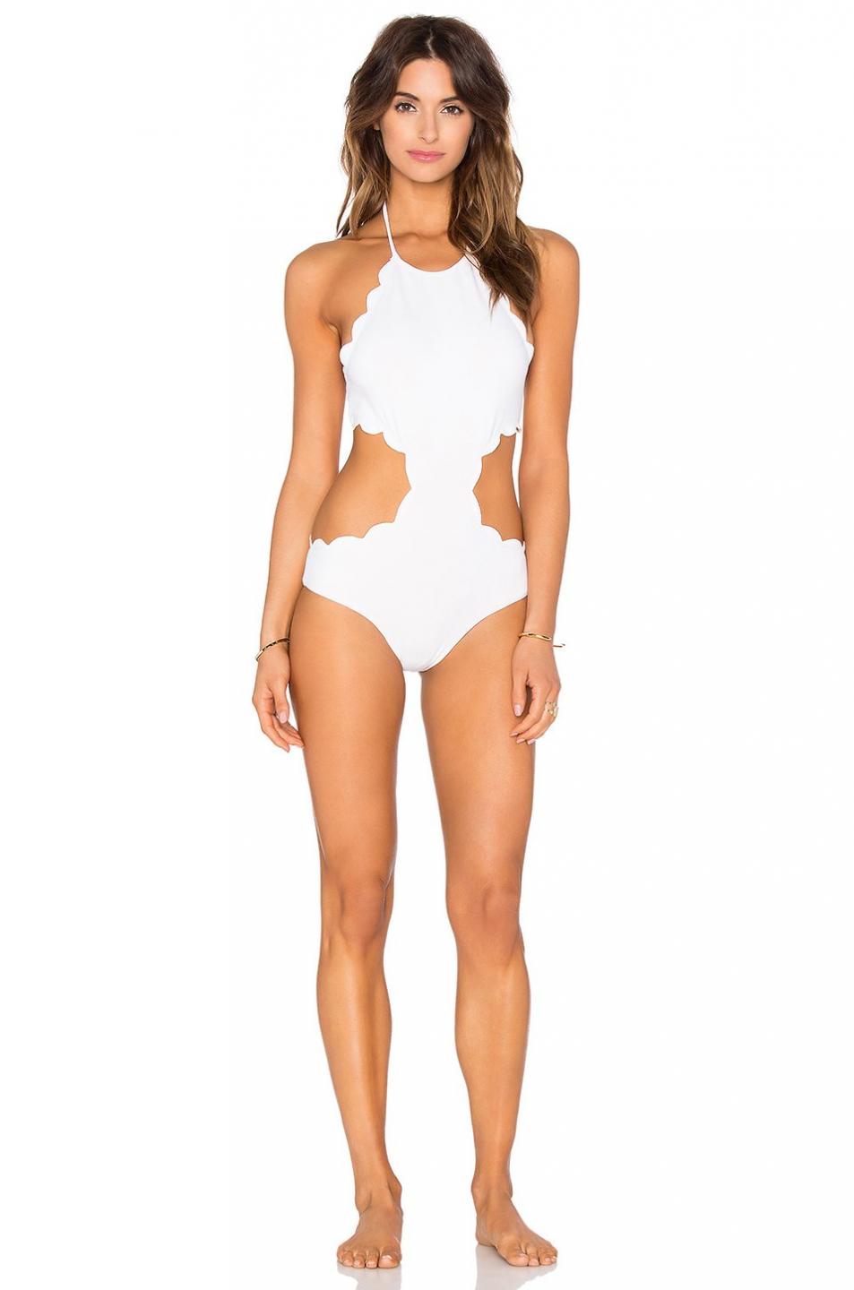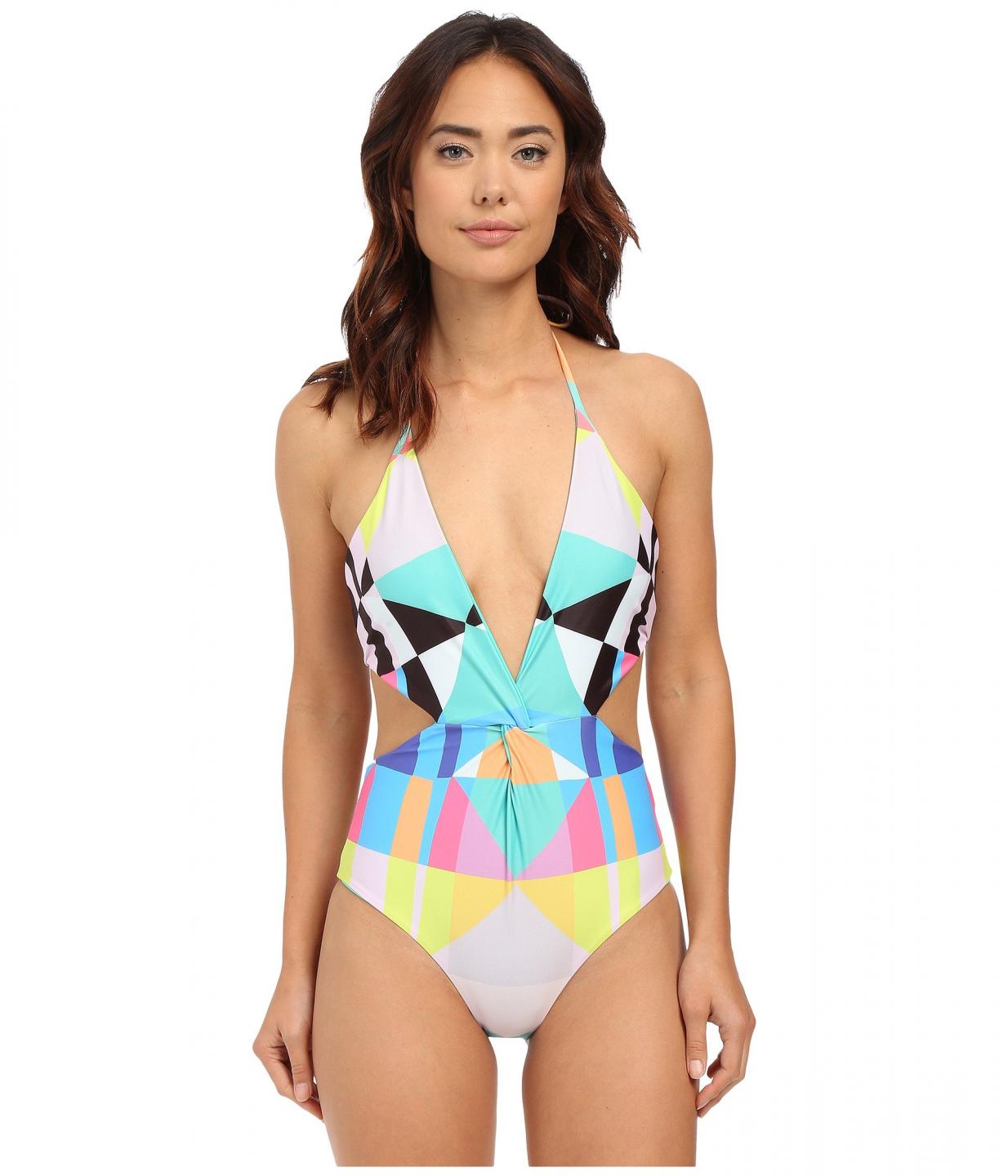 - Монокини (открытые купальники с разрезами на талии), как и слитные купальники с вырезами в определённых зонах, отлично подойдут обладательницам атлетичной фигуры.