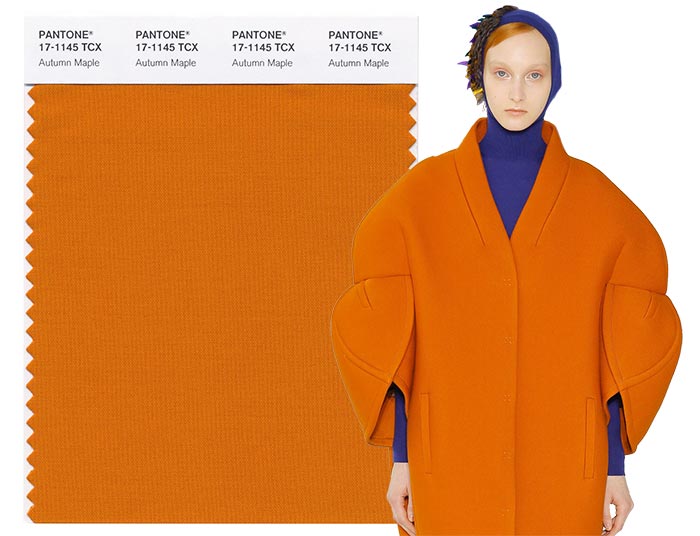 Очень красивый, тёплый и слегка припылённый оттенок Оранжевый кадмий замечательно вписывается в модную палитру. Он очень осенний и игривый, напоминает сочную и свежую абрикоску. Верхняя одежда этого оттенка поднимет настроением вам и окружающим, в то же время делая образ более уютным и солнечным. Оранжевый кадмий будет замечательно выглядеть в комбинации с пастельными и светлыми тонами. Виктория Бэкхем (Victoria Beckham), Марк Джейкобс (Marc Jacobs) и Louis Vuitton использовали этот оттенок в своих коллекциях, добавив им игровости и солнечного света.