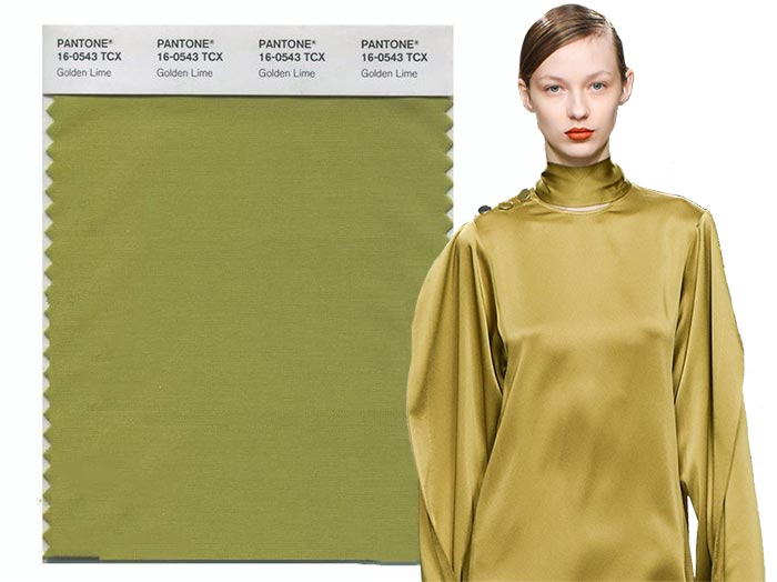 Тёплый золотистый оттенок пришёл к нам из 70-х, напоминая о том, что будет модно этой осенью. Слегка приглушённый жёлтый очень похож на солнечный свет, поэтому Oak Buff будет очень гармонично сочетаться с тёмными оттенками, акцентируя внимание на деталях. Во время серых и пасмурных дней одежда этого цвета будет согревать и поднимать настроение. Коллекции David Koma, Джона Гальяно (John Galliano) и Fendi помогут вам в создании своих стильных и модных образов, ведь они использовали цвет жёлтого дуба.