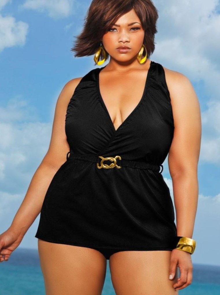 Женщинам-пышкам лучше остановить свой выбор на слитных купальниках, тёмных, приглушённых тонов. Следует избегать броских рисунков и узоров, откажитесь от горизонтальных полос. Выбирайте купальник с утягивающими вставками или корсетом, это поможет визуально скинуть пару килограмм. Для женщин с нестандартной фигурой идеально подойдут купальные платья: они прекрасно скроют все изъяны.