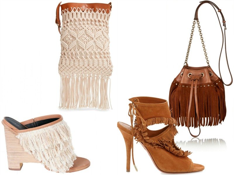Ещё одна «фишка» этого года – сумки в сочетании с обувью, похожие по фактуре и цвету. Такой тандем выглядит очень органично. Конечно же, бахрома является неотъемлемой частью этой модной пары. Мы предлагаем вам выбрать подходящие варианты, опираясь на нашу фотоподборку.