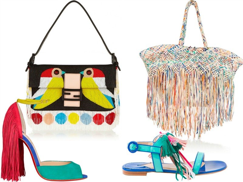Roberto Cavalli добавил в свою коллекцию сумки с бахромой, комбинируя их с короткими кожаными курточками и узкими джинсами. Marni считает, что бахрома и цветочный принт вместе могут дополнить любой образ, добавив ему кокетства и женственности. Известный бренд H&M тоже предлагает интересные сумки с цветочным принтом, декорированные бахромой.